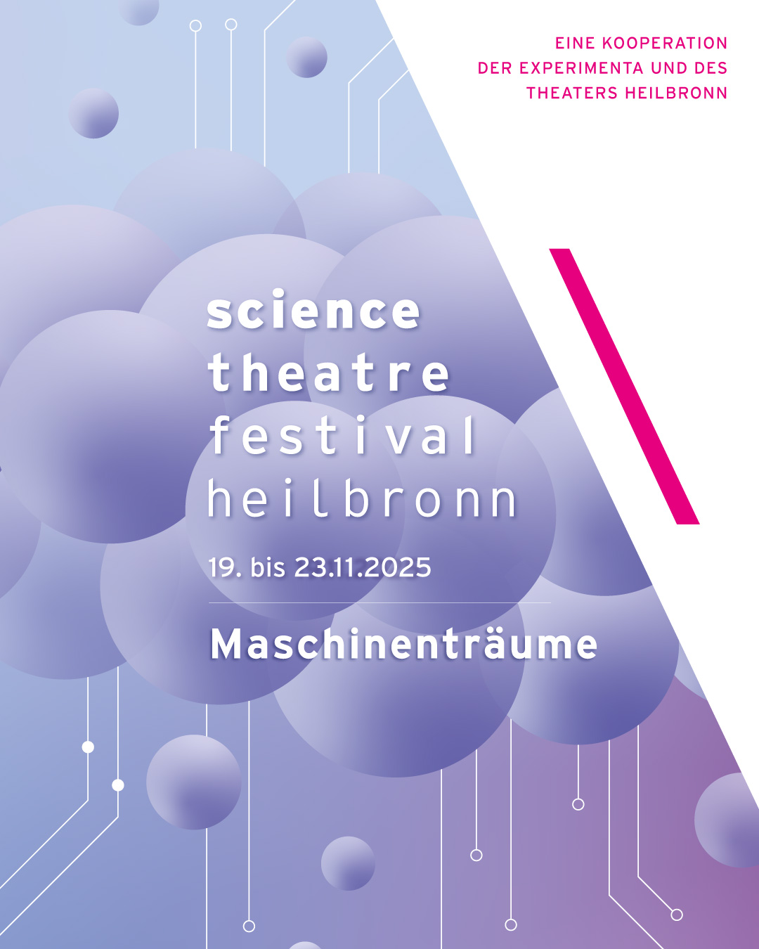 Wir freuen uns, Sie vom 19. bis 23. November 2025 zum »Science & Theatre«-Festival einzuladen, das erneut in Kooperation von Theater Heilbronn und experimenta stattfindet. Unter dem Motto »Maschinenträume« widmen wir uns dem Hot Topic »Emotionale KI«. Spannende Inszenierungen von deutschen und internationalen Theater- und Tanzgruppen erwarten Sie, die Sie nicht nur über die aktuellen Herausforderungen auf dem Gebiet der »Emotionserkennung« ins Nachdenken bringen sollen, sondern auch über das zukünftige Verhältnis von Mensch und Maschine und die damit verbundenen Hoffnungen und Befürchtungen.