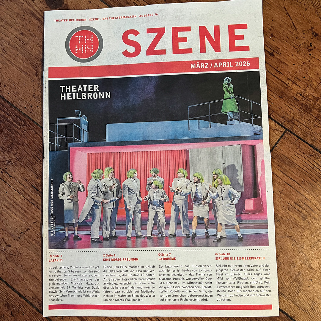 Die 76. Ausgabe unseres Theatermagazins »Szene« gewährt Ihnen wieder einen Blick hinter den Vorhang des Heilbronner Theaters. Erfahren Sie Spannendes und Wissenswertes rund um unser Programm im März und April 2026...