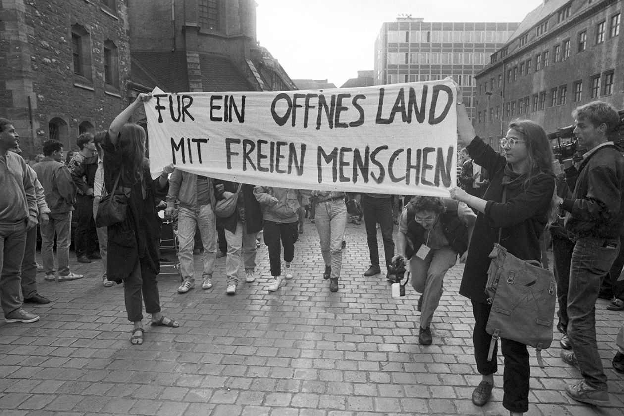 So überraschend der Mauerfall am 9. November 1989 für die Menschen in Ost und West auch kam, die Friedliche Revolution in der DDR entstand nicht aus dem Nichts. Seit Michail Gorbatschow ab Mitte der 1980er-Jahre mit Glasnost (Transparenz) und Perestroika (Umgestaltung) Reformen in der UdSSR vorantrieb, verschärften sich in der DDR die Widersprüche – zumal die SED-Führung keinerlei Bereitschaft zeigte, ihrerseits über Reformen nachzudenken und damit das Protestpotential in der eigenen Bevölkerung weiter anheizte. Nach der offensichtlichen Fälschung der Kommunalwahlen am 7. Mai 1989 entlud sich dieser Unmut schließlich im folgenden Sommer in der Massenflucht von DDR-Bürgern in die westdeutschen Botschaften in Warschau, Budapest und Prag und den ab September stattfindenden Montagsdemonstrationen, an deren Organisation oft die Theater beteiligt waren. Auch durch den Rücktritt Erich Honeckers und das Einlenken der Regierung ließ sich der Druck der Straße nun nicht mehr reduzieren. Das schon seit Beginn der 1980er-Jahre stetig gewachsene Netz an Friedens-, Menschenrechts- und Umweltgruppen, oft mit kirchlichem Hintergrund, die den politischen Alleinvertretungsanspruch der SED zunehmend in Frage stellten, erleichterte in dieser Zeit die Neuformierung der Bürgerbewegungen, die wesentlich zum Wandel in der DDR beitrugen.