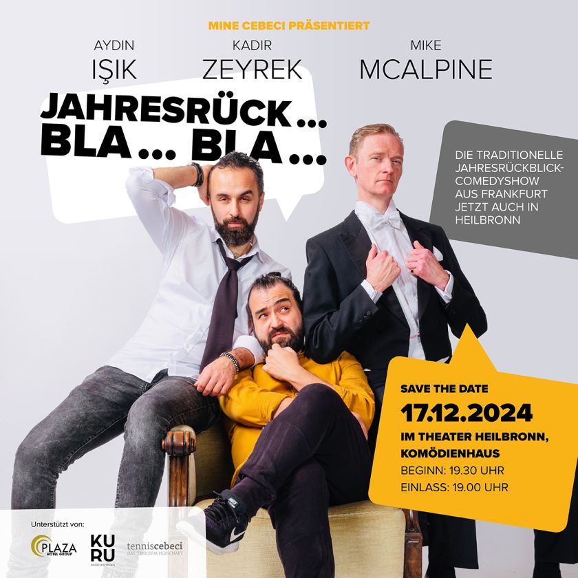 Die traditionelle Jahres-Rückblick-Comedyshow aus Frankfurt jetzt auch in HeilbronnMIKE MCALPINE, KADIR ZEYREK UND AYDIN IŞIK RECHNEN KNALLHART MIT DEM JAHR 2024 AB!