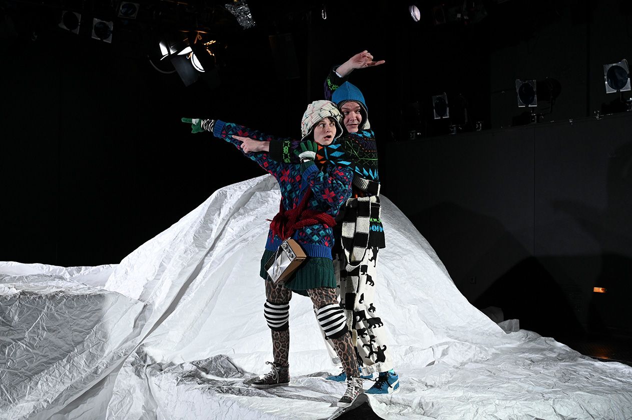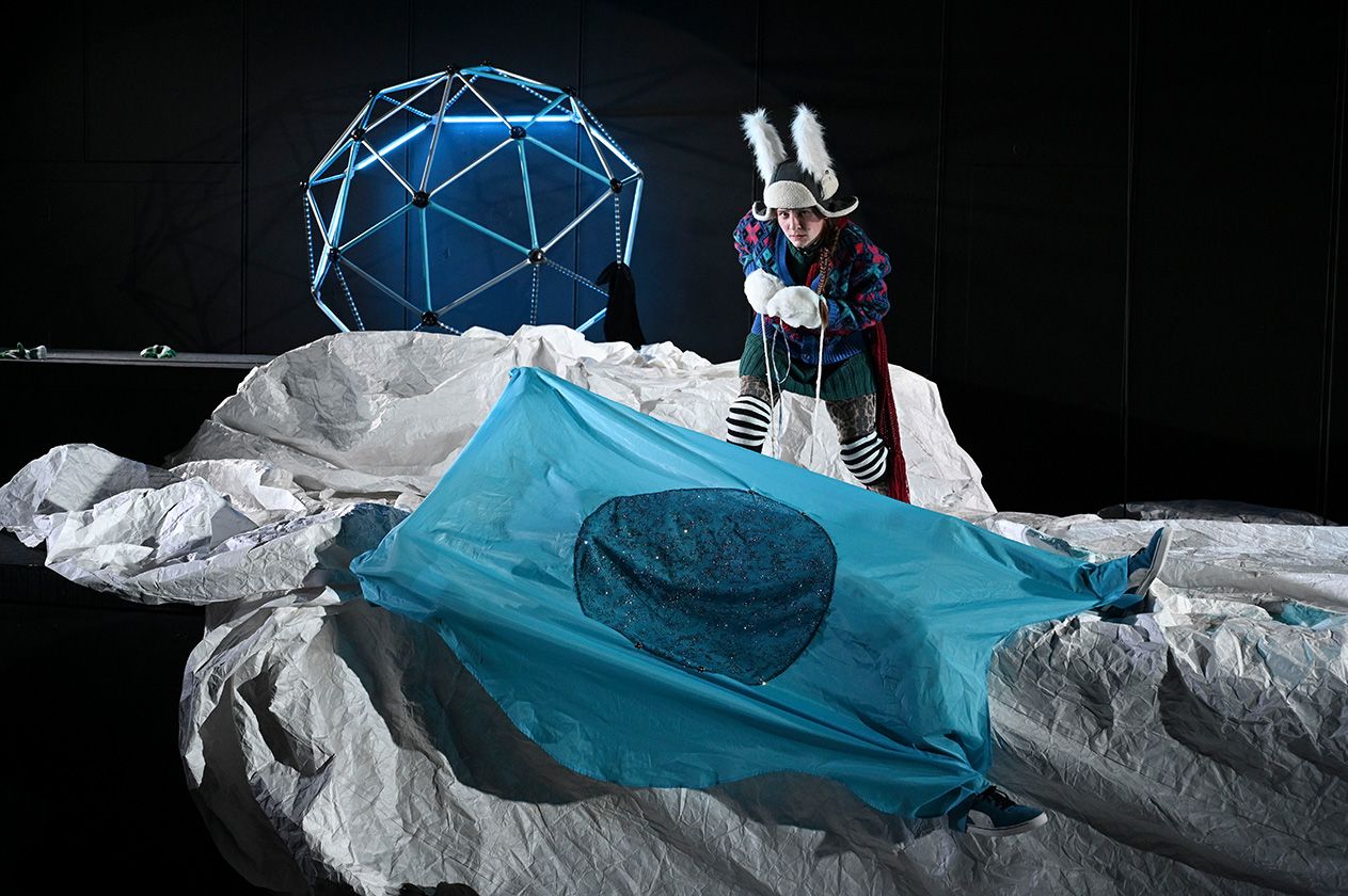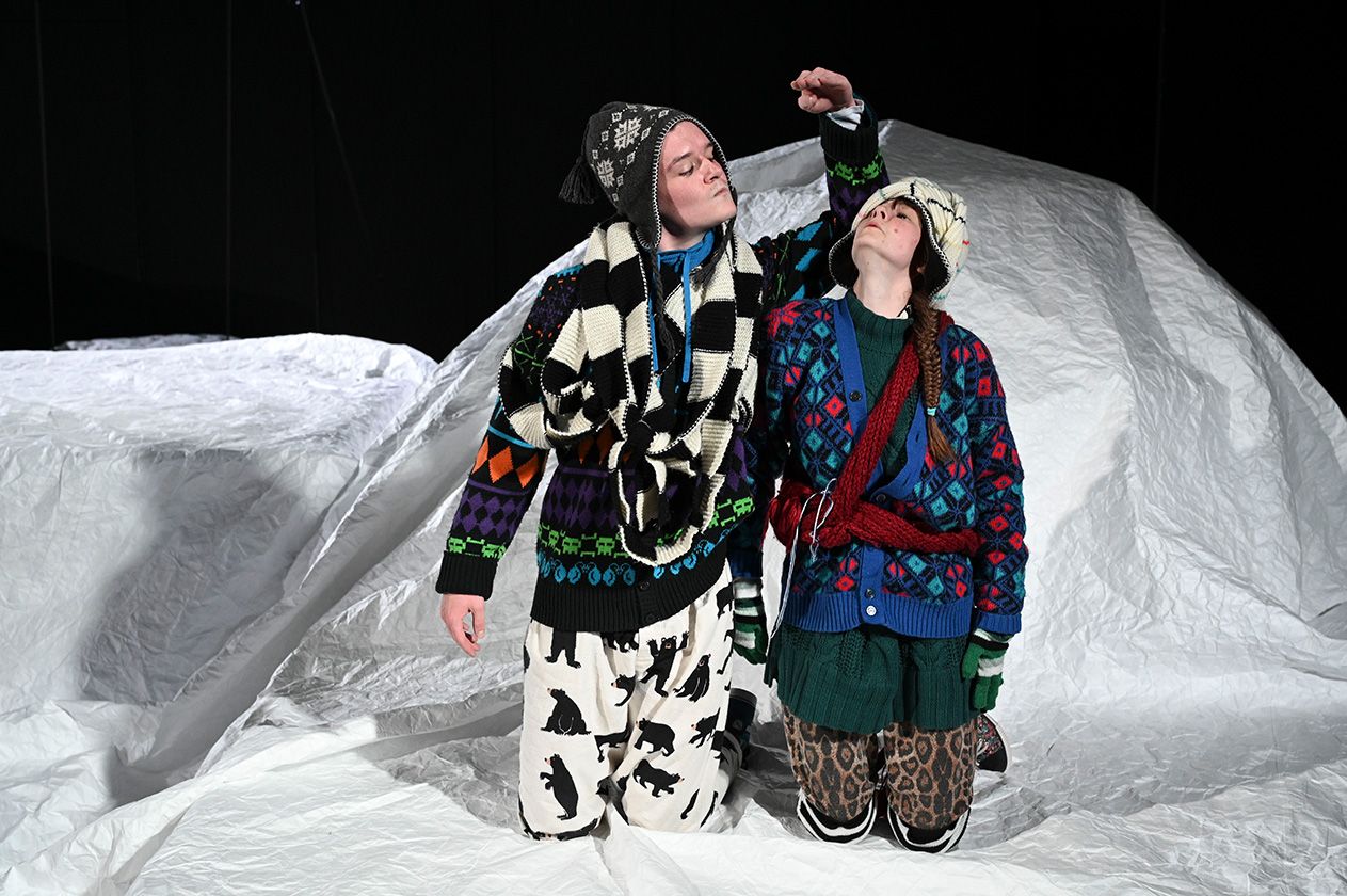 Die Bühne ziert zunächst lediglich eine große weiße Plane (Ausstattung: Eva Butzkies) und kommt wie die kanadische Eislandschaft ohne viel Schnickschnack aus. Damit wird deutlich: Sarah Speisers Regie stellt ganz das gesprochene, erzählte Wort und die Schauspielkunst in den Vordergrund. Beides vermag es, die kleinen und auch großen Besucher in Bann zu ziehen. Denn Wolff und Schlegel spielen in der Tat herzig, mit viel erfrischendem Humor sowie großer Begeisterung und bleiben dabei nah am Kinderalltag. (…)