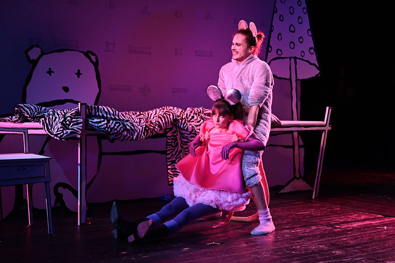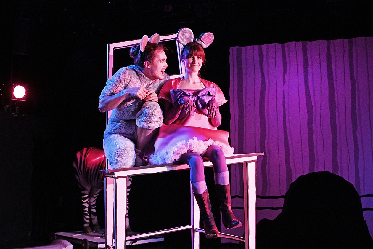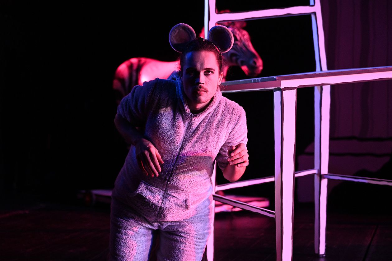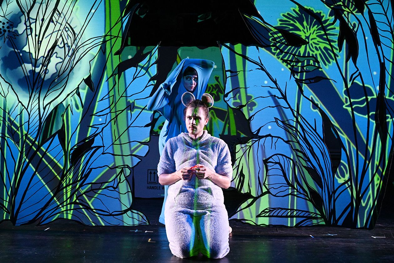 Mit vollem Körpereinsatz eignet sich das energiegeladene Darstellerduo Max Lamperti und Nora Rebecca Wolff diese tierischen Figuren an. Belustigt verfolgt man, wie Lamperti gut 50 Minuten lang über die Bühne wuselt, dabei immer wieder die typischen Bewegungen eines kleinen Nagers imitiert … Nora Rebbeca Wolff spielt diesen Automaten im wahrsten Sinne des Wortes herrlich aufgedreht: mit hohem Stimmchen, gestelzten Bewegungen und wiederholten Hängern im Sprachzentrum: »Tu was! Tu was! Tu was!«.