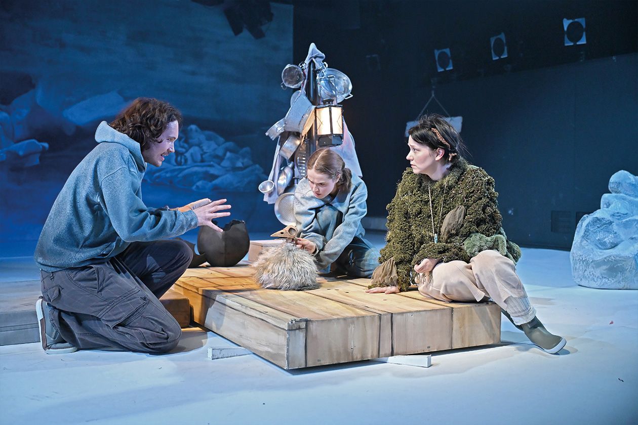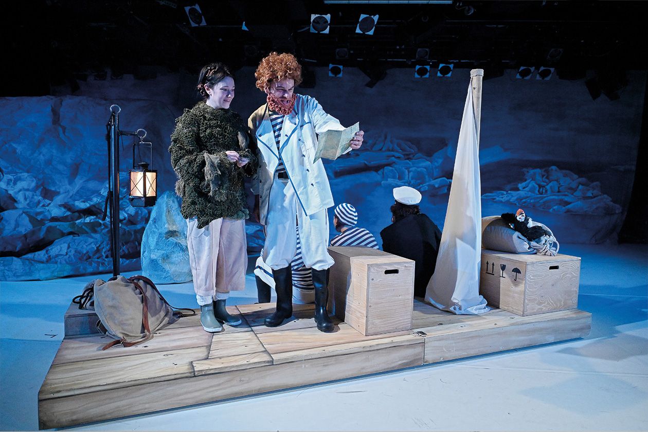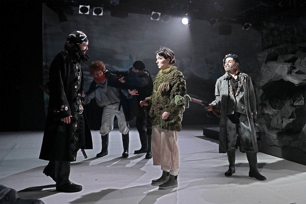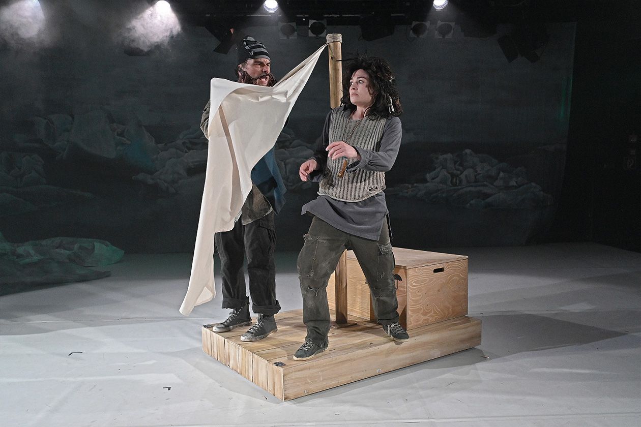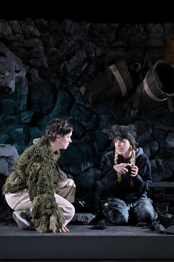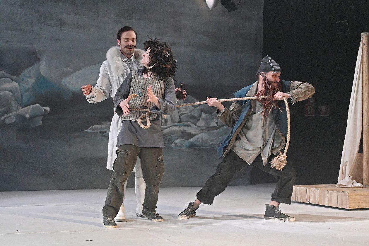 Auch mithilfe atmosphärischer Licht- und Musikeinsätze zeichnen Regie [Sarah Speiser] und Ausstattung (Eva Butzkies) eine raue Welt, fein herausgearbeitet werden durch Kulisse, Requisiten und Kostüme die verschiedenen Lebenswelten. Neben Elementen aus dem Figurentheater (Lukas Schneider), die in »Siri und die Eismeerpiraten« eingeflossen sind, setzt Speiser, die Physical Theatre studiert hat, auf ein körperbetonte Darstellungen, vor allem als auf der Bühne ein Sturm aufkommt.