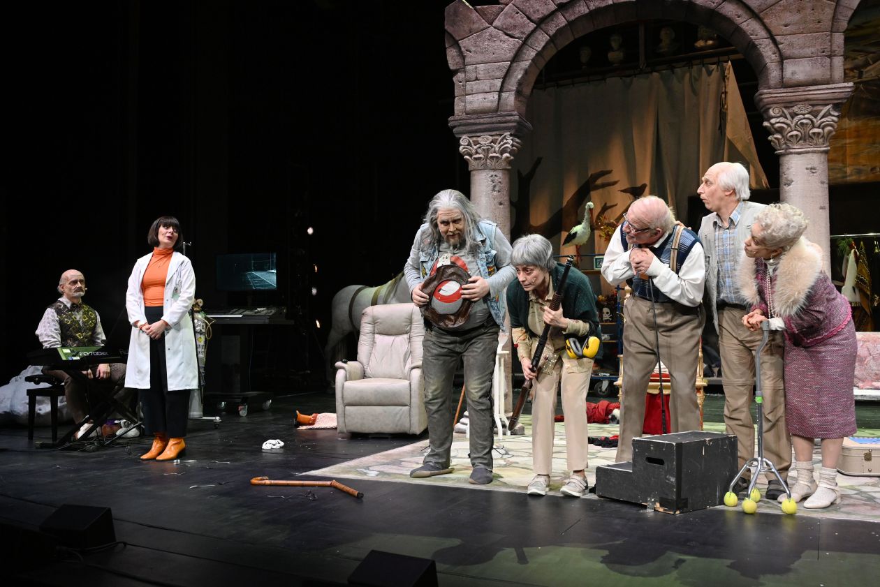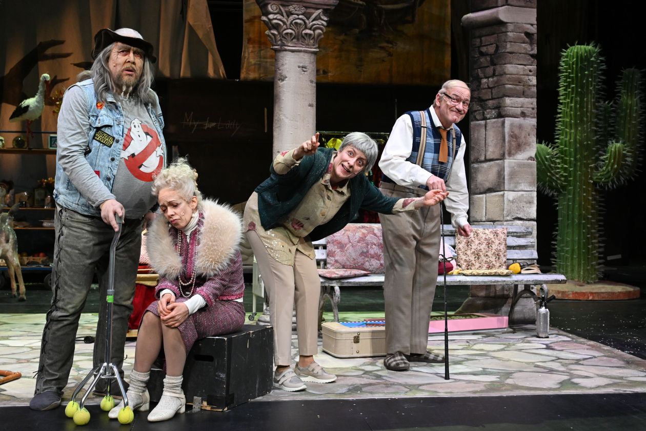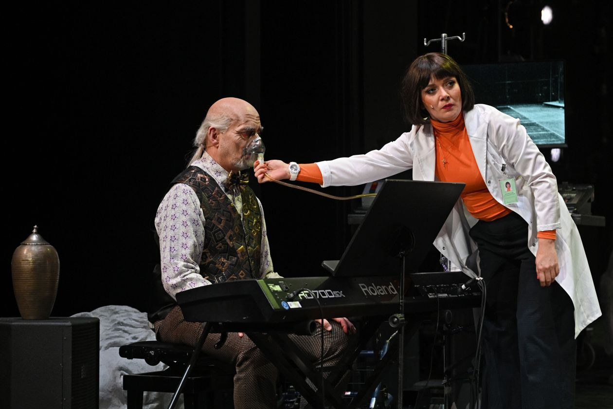 Ein Songdrama von Erik GedeonDas Theater ist schon seit Langem geschlossen und dient nur noch einer Gruppe hochbetagter Schauspieler als regelmäßiger Treffpunkt. Wenn sie in ihren besten Kleidern auf der Bühne zusammensitzen, schwelgen sie in Erinnerungen und durchleben noch einmal ihre Erfolge. Zuweilen scheint die eine oder der andere mit den Bühnenhelden, die sie einst verkörpern durften, zu verschmelzen. Und Liebe, Romantik, Übermut und Lebenslust verschwinden auch nicht, wenn die Knochen schmerzen oder das Haar schütter wird. Wenn nur die strenge Altenpflegerin nicht wäre. Sie erinnert ihre Schützlinge nur allzu gern an deren Gebrechlichkeit und versucht, ihnen mit Vorträgen über Krankheit und Tod die Stimmung zu versauen. Obendrein will sie mit kindischen Übungen die geistige Aktivität ihrer Senioren in Schwung bringen.