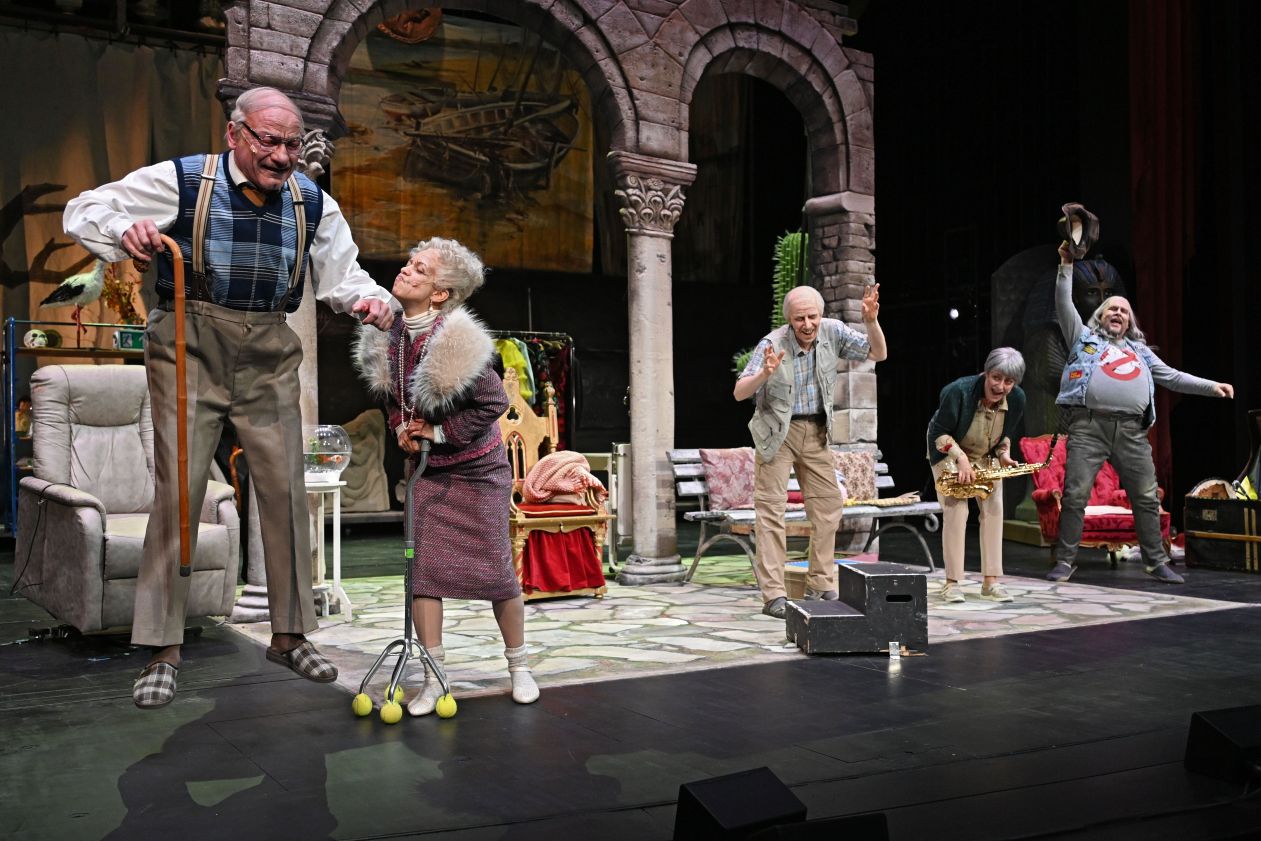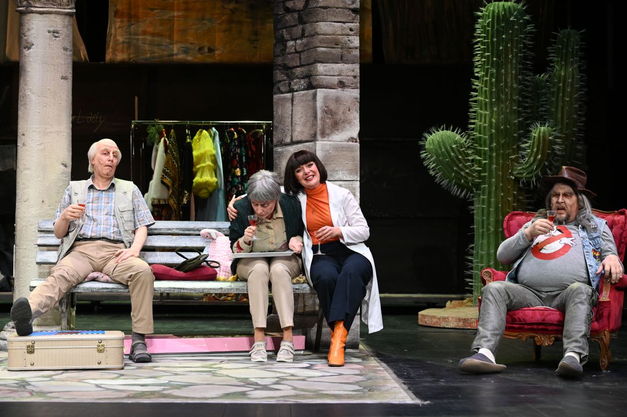 Doch kaum dreht dieser Drachen in Frauengestalt den Alten den Rücken, lassen sie es krachen. Da wird geflirtet, getanzt und vor allem gesungen. Mit Songs von »I Love Rock’n Roll«, »I Will Survive«, »Barbie Girl«, »Sex Bomb« oder »Born to Be Wild« springen sie mitten hinein in den musikalischen Jungbrunnen und toben sich aus, bis ihr altes Theater fast abhebt. Große Gefühle und Freude am Leben sind eben keine Frage der Jahreszahlen, und jung bleiben kann man auch, wenn man alt wird.