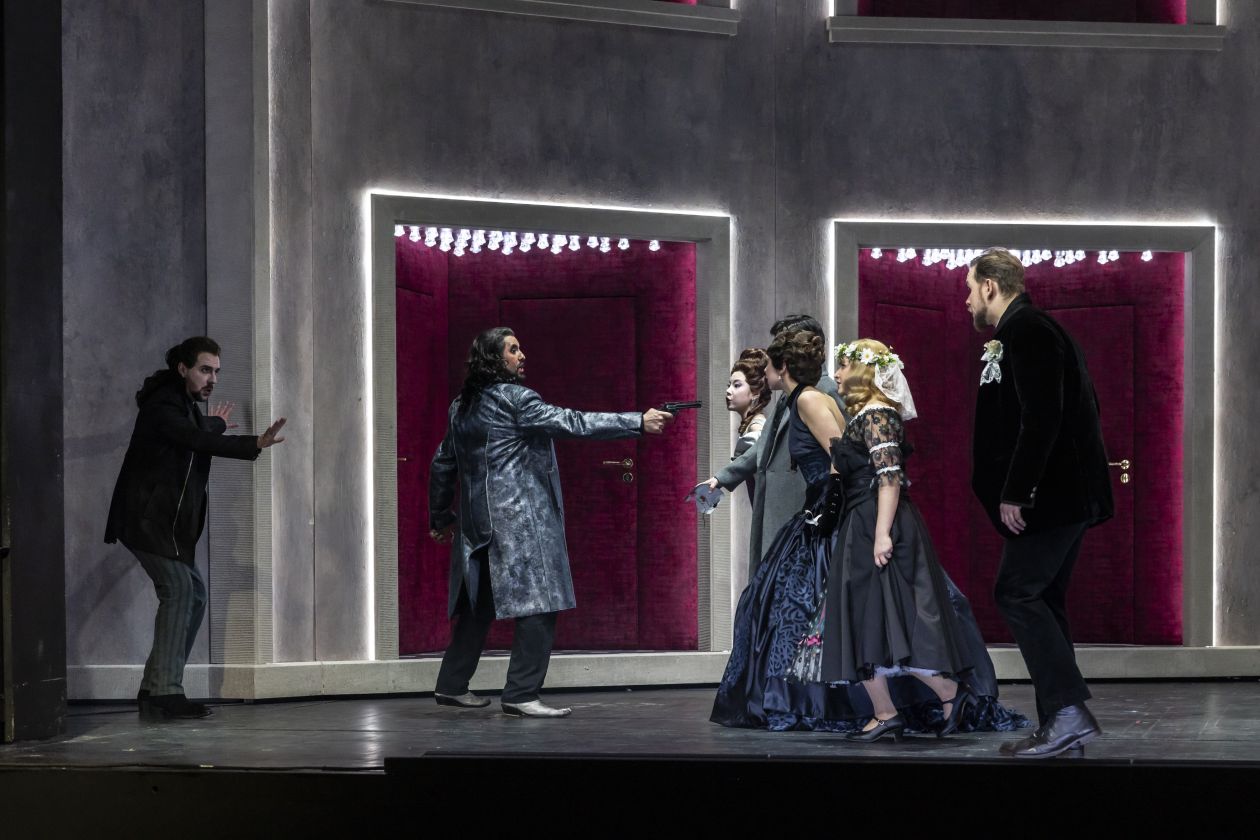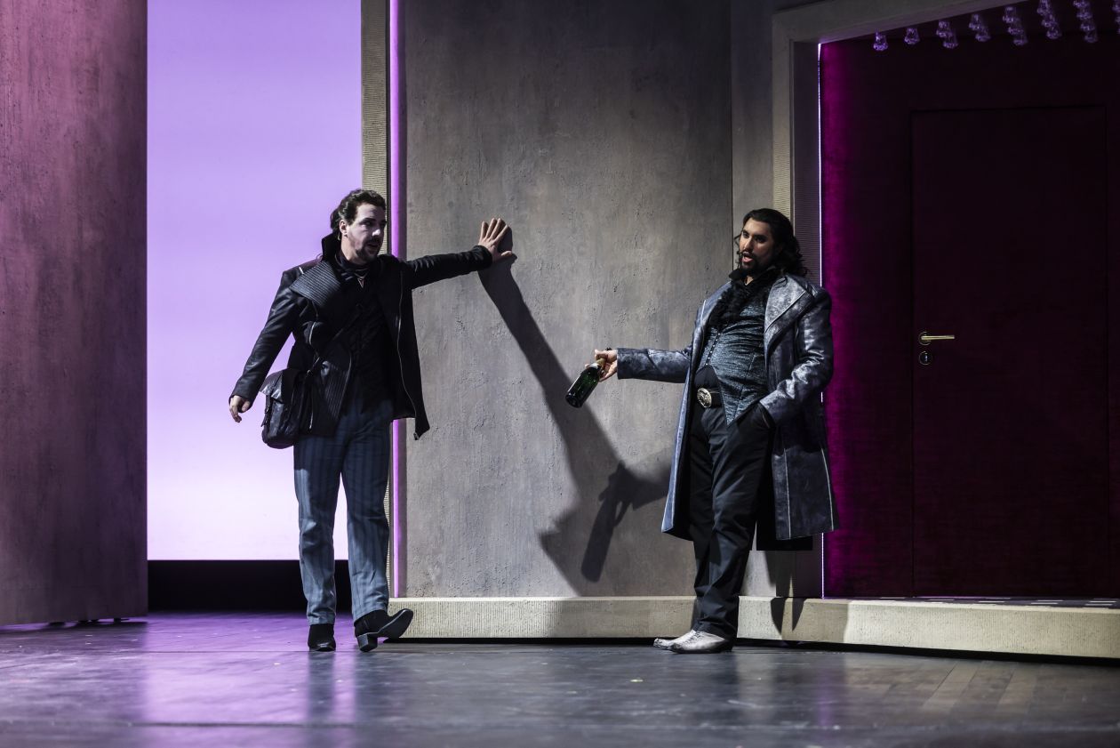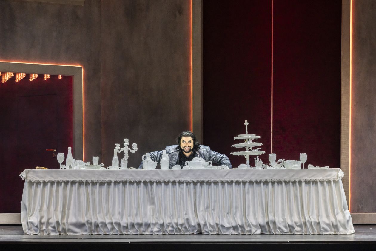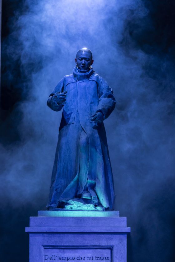Der stürzt sich indes — ganz ungerührt von dem Blut, das an seinen Händen klebt — in neue Abenteuer. Donna Elvira, eine von ihm verlassene Geliebte, die er unverhofft wiedertrifft, stört ihn dabei nur. Don Giovanni überlässt es seinem Diener Leporello, der ein Register aller Eroberungen seines Herrn führt, der Gedemütigten daraus vorzulesen. Er mischt sich unter eine bäuerliche Hochzeitsgesellschaft, denn die schöne Braut Zerlina hat es ihm angetan. Doch bevor Zerlina seinen Verführungskünsten erliegt, geht Elvira dazwischen und warnt sie vor dem Wüstling. Auch Donna Anna und Don Ottavio sind Gäste der Gesellschaft und erkennen den Mörder des Komturs. Dem jedoch gelingt die Flucht. Don Giovanni lässt auch in Bedrängnis nichts anbrennen, amüsiert sich noch mit Leporellos Liebster und brüstet sich vor seinem Diener mit dieser Eroberung − just vor einem Standbild auf dem Friedhof, das zu Ehren des ermordeten Komturs errichtet wurde. Als er den steinernen Mann dann auch noch zum Gastmahl einlädt und damit die Totenruhe stört, hat er den Bogen endgültig überspannt.