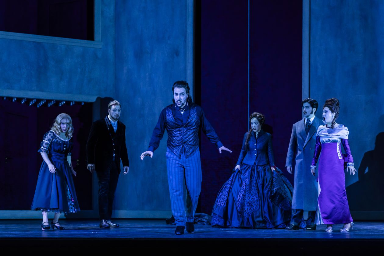 Der spanische Edelmann Don Giovanni kennt nur ein Vergnügen: Frauen. Ob blond oder brünett, ob jung oder alt — er lässt keine Gelegenheit aus, ihnen nachzustellen und sie zu verführen. Kaum ist dies gelungen, sucht er sich ein neues Opfer. Ist die Dame in festen Händen, wird sein Jagdtrieb erst recht entfacht. Gerade hat er wieder ein Objekt der Begierde im Visier: Donna Anna, die Tochter des Komturs, die aber mit Don Ottavio verlobt ist. Das hält den Frauenjäger nicht davon ab, in ihr Schlafzimmer einzudringen. Donna Anna ruft um Hilfe, ihr Vater eilt herbei und wird im Duell von Don Giovanni getötet, der unerkannt entkommen kann. Don Ottavio und Donna Anna schwören dem Mörder Rache.