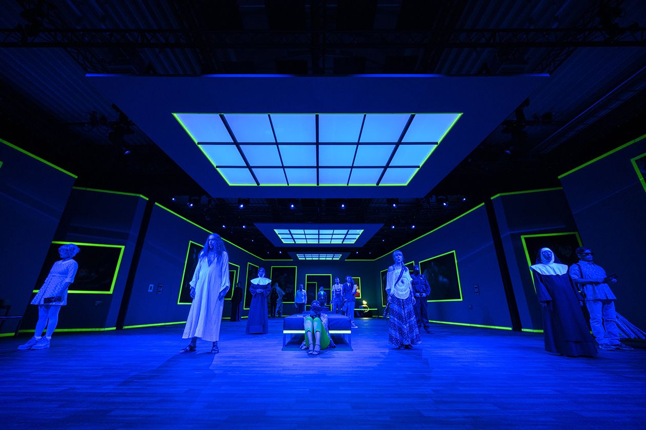 Sie können die VR-Brille jederzeit absetzen und die Vorstellung so genießen. Schauspielende, Bühnenbild und Kostüme sind auch so eindrucksvoll.