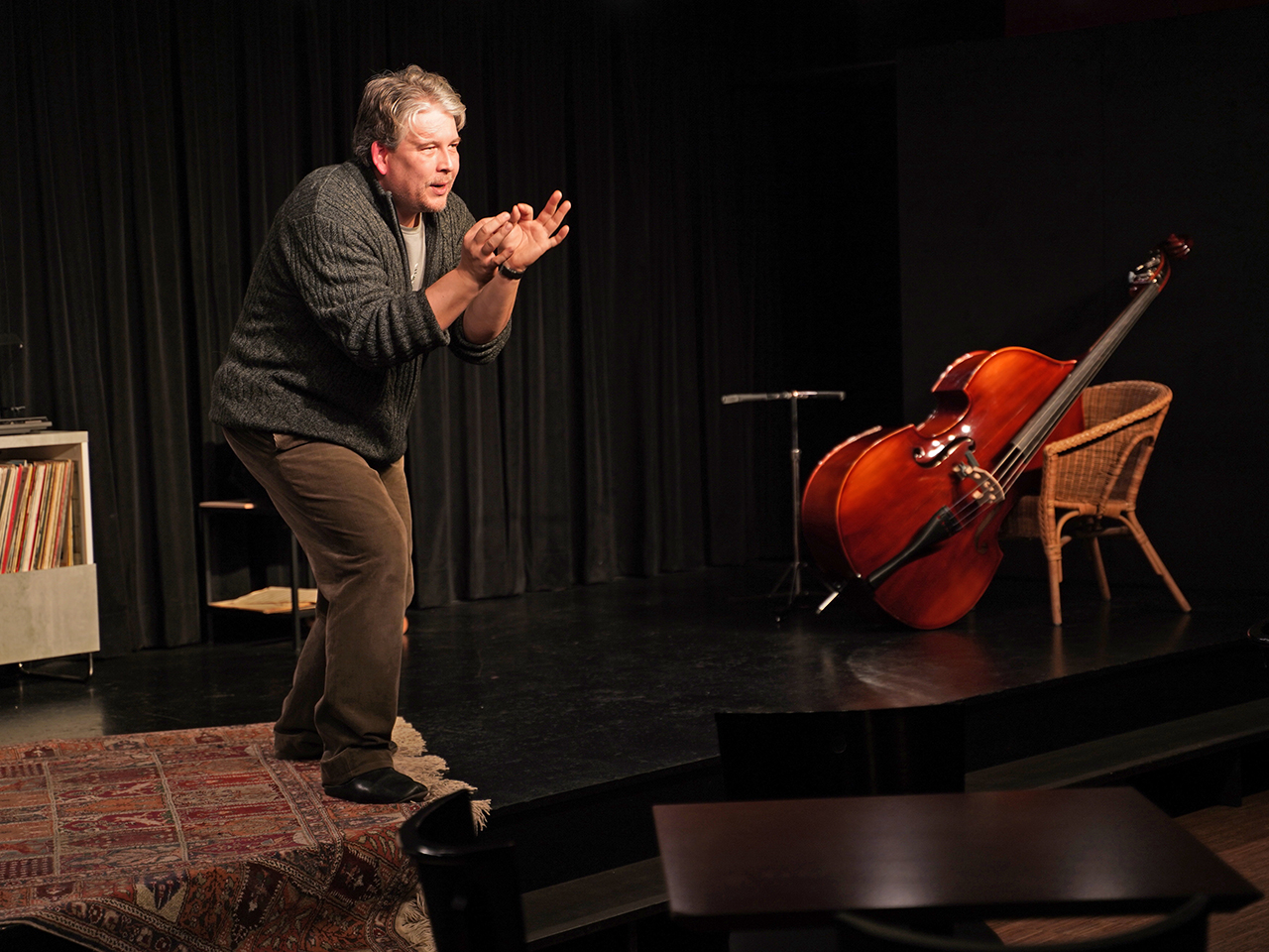 »Jeder Musiker wird Ihnen gern versichern, dass ein Orchester jederzeit auf einen Dirigenten verzichten kann, aber nicht auf den Kontrabass.« In seinem schallgeschützten Raum räsoniert ein nicht mehr ganz junger, nicht gerade hochbegabter Kontrabassist über sein Instrument und seinen Platz im Leben. Er ist Beamter auf Lebenszeit im Staatsorchester, drittes Pult, der nur bei Tutti-Einsätzen dran ist. Der namenlose Musiker hasst Mozart und Wagner und lässt beim Spielen gern mal ein paar Noten aus, um sich an den Komponisten zu rächen. Was soll ihm schon passieren? Ständig steht ihm das Instrument, das aussieht wie ein altes Weib mit zu fetten Hüften, im Weg herum. »Können Sie mir sagen, wieso ein Mann Mitte Dreißig, nämlich ich, mit einem Instrument zusammenlebt, das ihn permanent nur behindert?« Der in seiner Bitterkeit äußerst humorvolle Monolog bietet beste Unterhaltung und viele aberwitzige Anekdoten aus der Musikgeschichte.