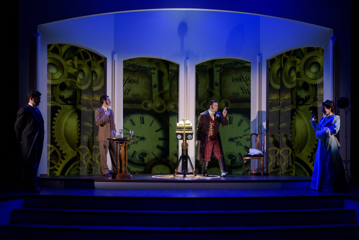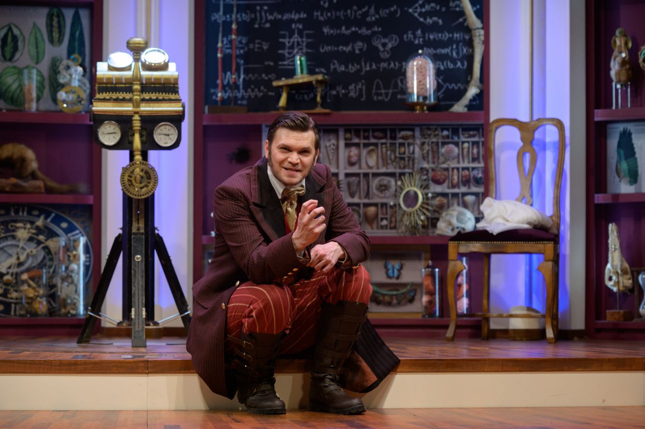 Autor und Regisseur Brian Bell interessiert sich nun vor allem für die Frage, welche Macht von neuen Technologien ausgeht. Und was es für Konsequenzen hat, wenn sie in die falschen Hände geraten. Ein ernstes Thema, sollte man meinen. Der 39 Jahre alte Texaner präsentiert es jedoch in seiner Version von „Die Zeitmaschine“ verpackt in einem überdrehten Bühnenspektakel. Dessen Uraufführung im Komödienhaus … wurde vom begeisterten Publikum mit viel Beifall bedacht.