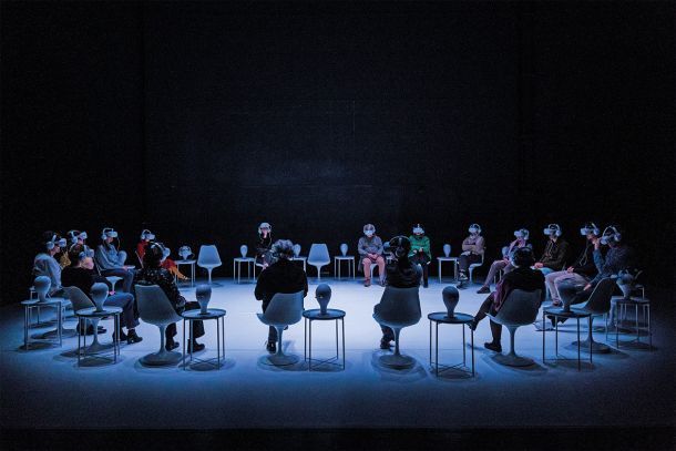 »Zeitreisen gehören zum Doofsten und zum Klügsten, was Science Fiction zu bieten hat«, schrieb der Filmwissenschaftler Georg Seeßlen anlässlich des Kinostarts des Films »Tenet« im Sommer 2020. »Unter anderem, weil ›Zeit‹ an sich zum Idiotischen und Komplizierten des menschlichen Lebens gehört.« Deshalb ist es nicht verwunderlich, dass sich Herbert George Wells in seiner 1895 erstmals in Buchform veröffentlichten »Zeitmaschine«, einem der ersten großen Klassiker der Science Fiction, genau damit beschäftigt. Im Gegensatz zu seinem vom Fortschritt begeisterten Vorgänger und Zeitgenossen Jules Verne interessierte er sich weniger für Technik und Naturwissenschaft an sich, sondern dafür, wie die Menschen – im Guten wie im Schlechten – damit umgehen. Der aus Texas stammende Autor und Regisseur Brian Bell und Chefdramaturg Andreas Frane haben Wells’ Geschichte als Ausgangspunkt für eine philosophische Komödie über Zeit und Zukunft, gute Absichten und schlechte Manieren genommen.