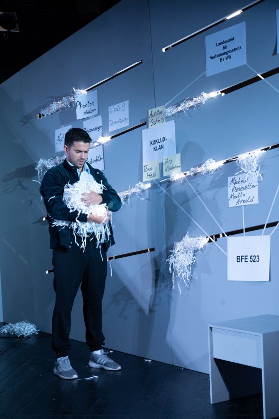 Warum die Akten zum Fall Kiesewetter noch immer als Verschlusssache gelten mit geschwärzten Stellen, ist eine der vielen Leerstellen, in die der Theaterabend den Finger legt. ... Anhaltender Applaus vom Premierenpublikum.