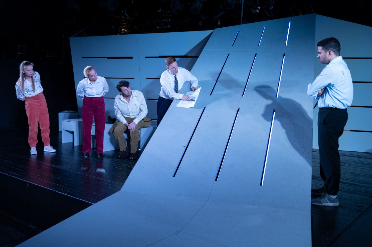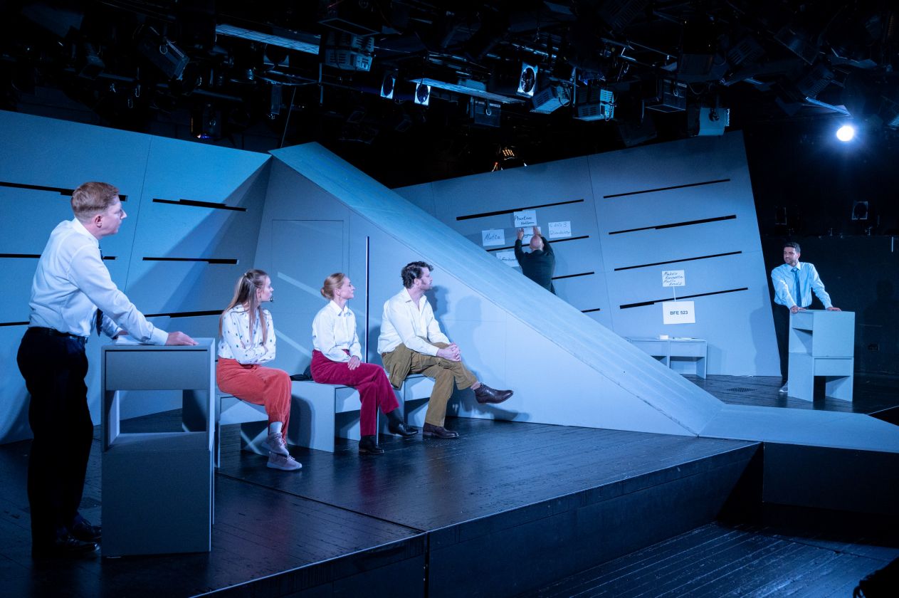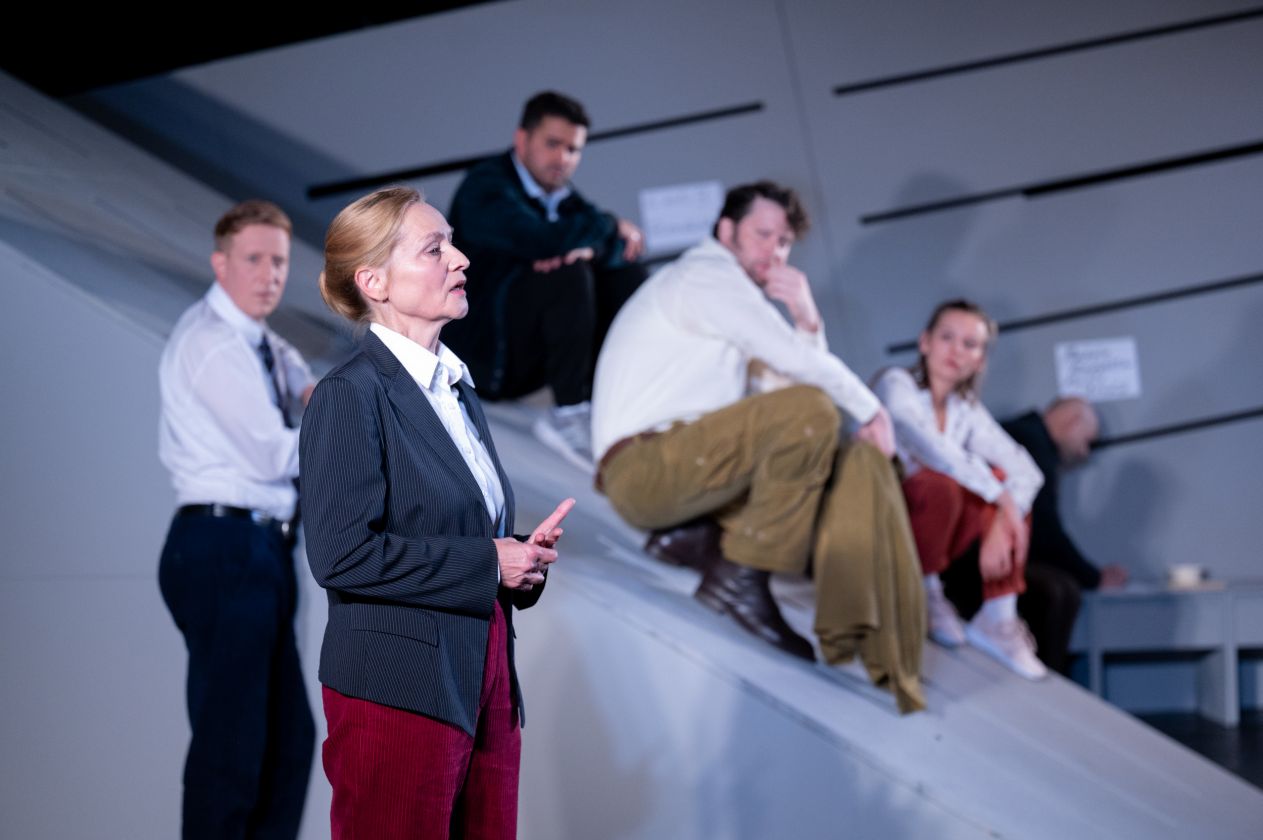 Auf der reduzierten Bühne (Sigi Colpe) passieren die Ungeheuerlichkeiten des Falls Michèle Kiesewetter Revue, gehen verschiedene Erzählstränge ineinander über und geben Lucas Janson, Gabriel Kemmether, Zlatko Maltar, Lisa Schwarzer, Sabine Unger und Tobias D.Weber der Fülle an Aussagen und Erinnerungen eine Stimme. …