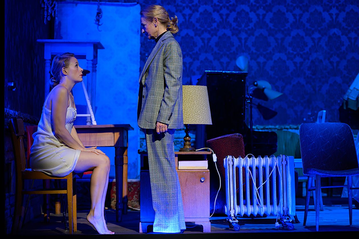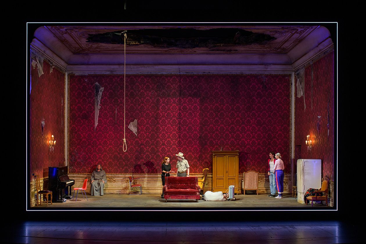 Die entscheidende Veränderung, die von Henning seiner Fassung mitgibt: Er nimmt die eigentliche Nebenfigur der Marianna und doppelt sie. Er macht aus ihr die Erzählerin, die vierzig Jahre nach dem Geschehen aus einiger Distanz die Geschichte erläutert, kommentiert, bewertet. In dieser für den Abend mit entscheidenden Rolle erleben wir Sabine Unger. Und sie ist genau die richtige Darstellerin dafür, immer wieder leise und doch eindringlich, in der an sich von Männern geprägten Geschichte die Sicht der Frauen, die auf der Bühne nur als reagierende Opfer vorkommen, darzustellen, die Geschichte aus ihrer Perspektive neu zu erzählen.