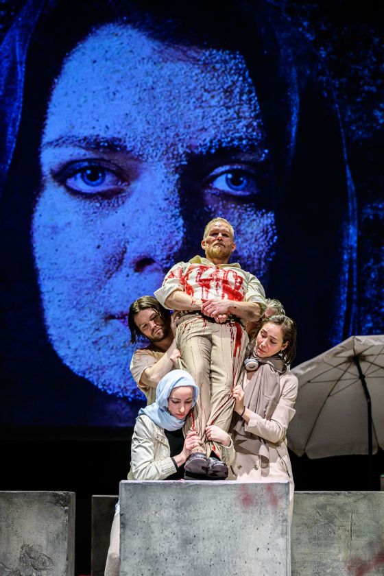 Gleichzeitig macht das Stück ästhetisch wie historisch einen wesentlich weiteren Raum auf, der bis in die Antike zurückreicht. Der Nahostkonflikt ist ein Exempel, um sich einer Gesellschaft zu nähern, die in einem fatalen Kreislauf von Gewalt feststeckt. In der Gefühle wie Angst, Schmerz und Hass regieren und starken Einfluss auf politische Entscheidungen nehmen.