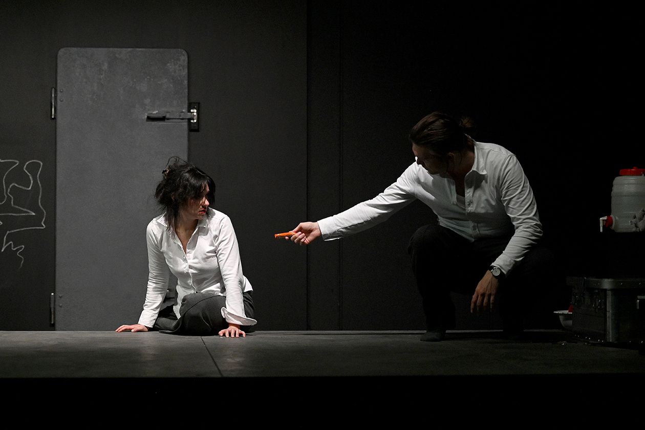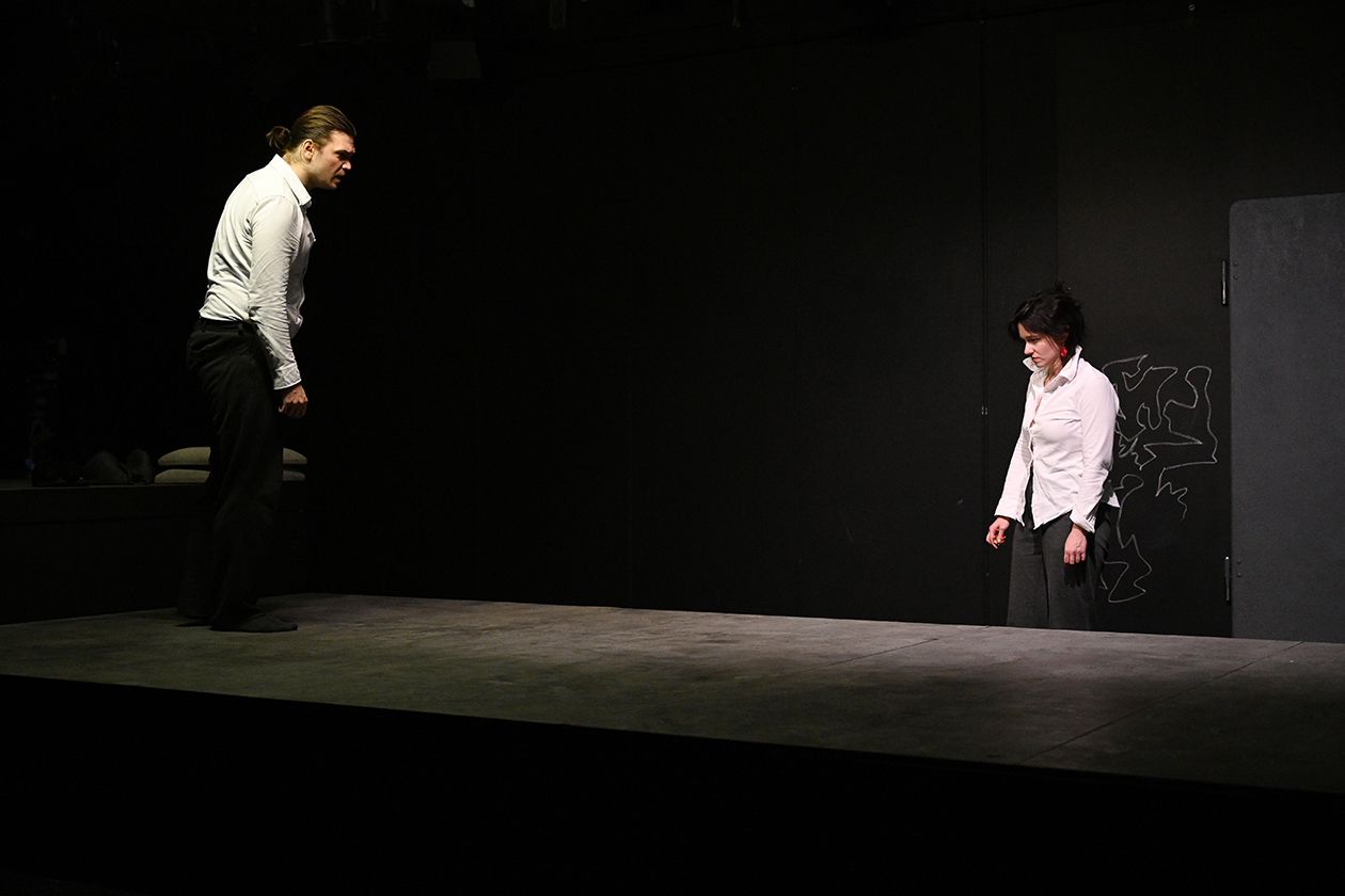 »Nach dem Ende« von Dennis Kelly führt das Publikum gehörig aufs Glatteis und ist spannend wie ein Krimi. Einmal gewonnene Erkenntnisse werden sofort wieder in Frage gestellt. Das 2005 in London uraufgeführte und 2007 am Deutschen Theater Berlin erstmals in Deutschland gespielte Stück blickt tief in die Psyche der beiden Protagonisten, die sich in einem undurchschaubaren Spiel um Liebe, Macht und Gewalt befinden, aus dem keiner als Gewinner hervorgehen kann.