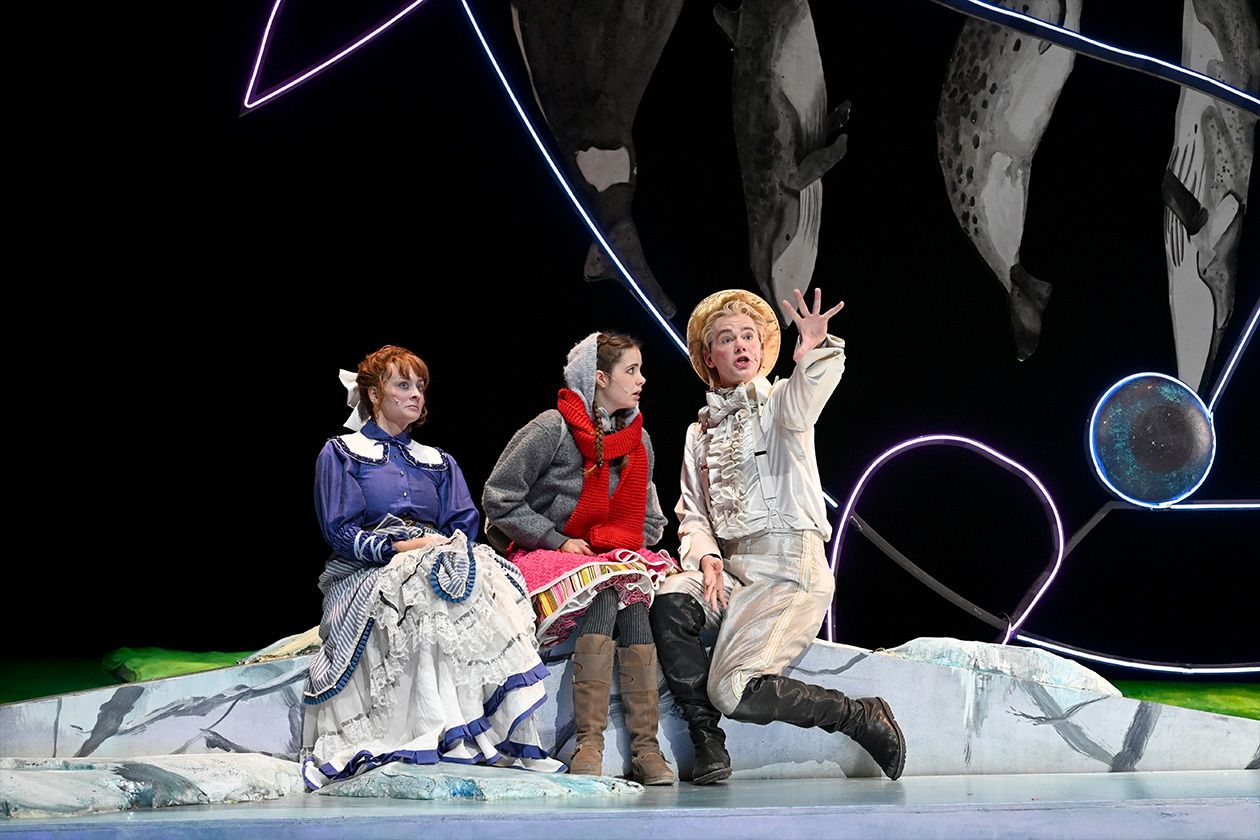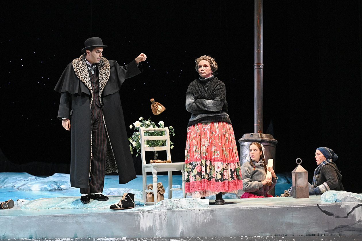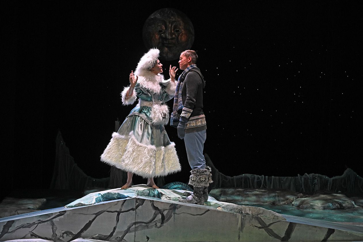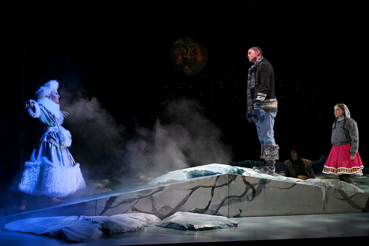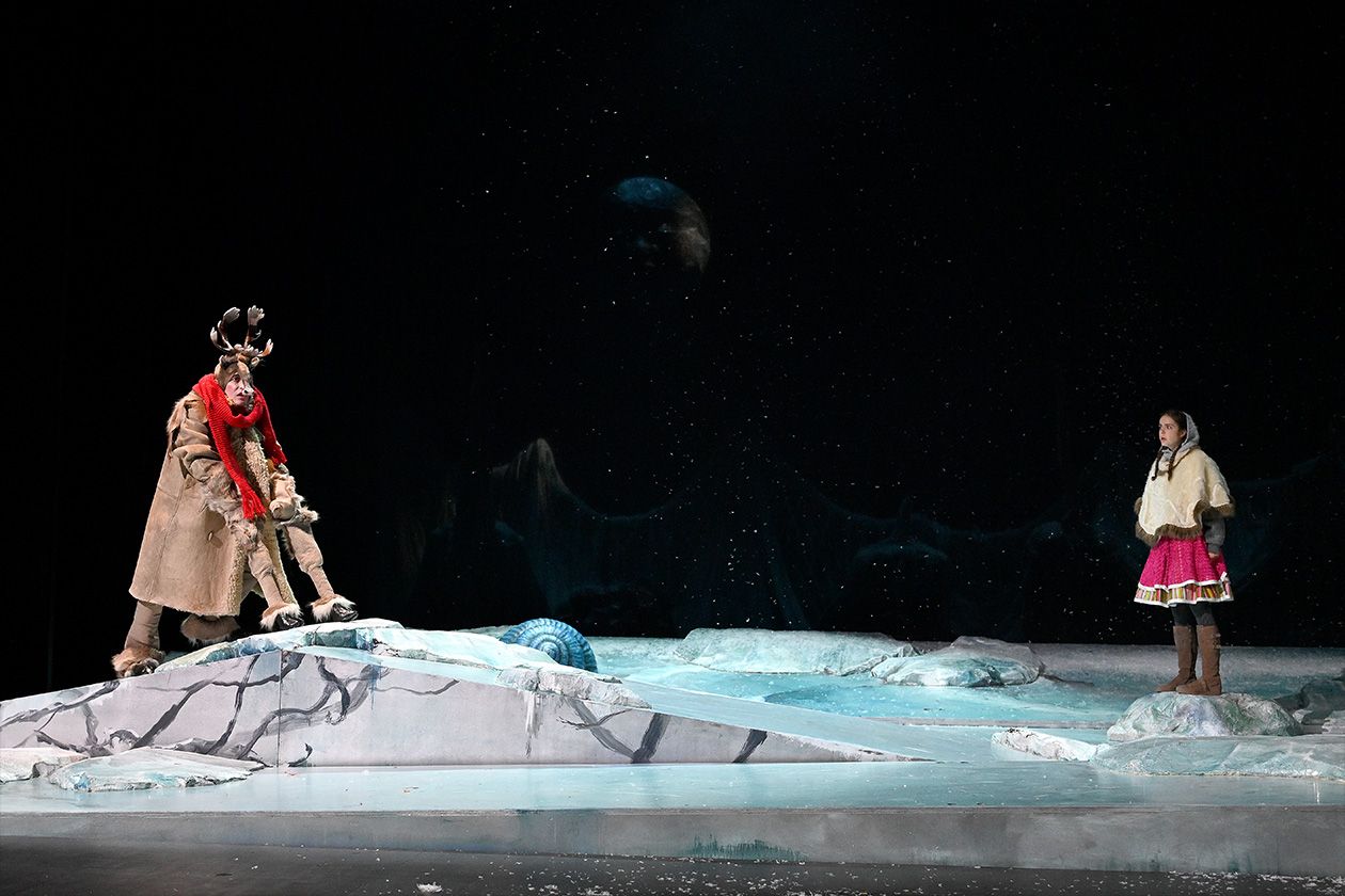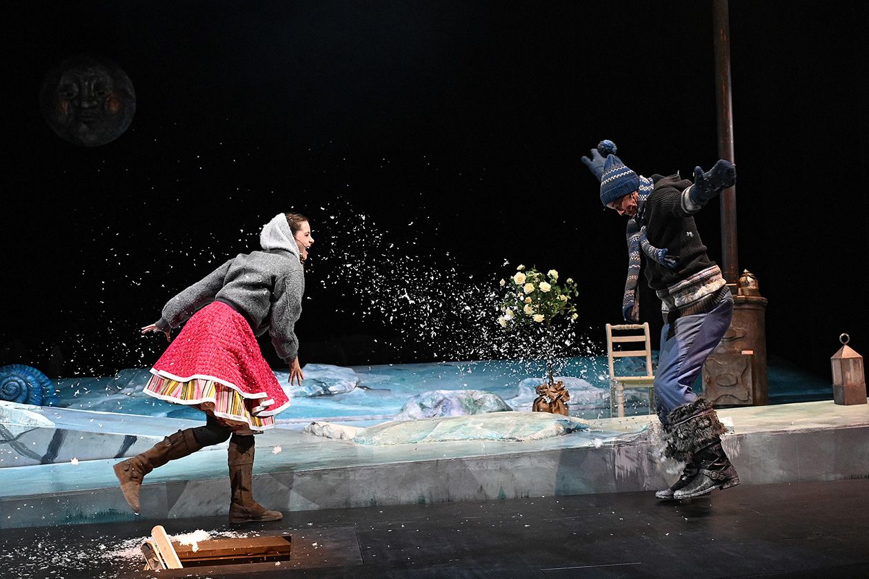 »Die Schneekönigin« nach Motiven von Hans Christian Andersen in der Bühnenfassung von Jewgeni Schwarz bietet alles, was ein großes Weihnachtsmärchen für Kinder braucht: eine spannende Geschichte, gute und böse Charaktere, ein wenig Grusel, ein paar skurrile Gestalten, eine eiskalte Glitzerwelt und ganz viel menschliche Wärme. Die wichtigste Botschaft an die kleinen Zuschauer lautet: Wenn man allen Mut zusammennimmt und seinen Weg geht, dann kann man selbst als vermeintlich Unterlegener ganz Großes leisten.