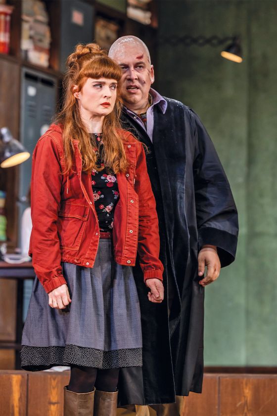 [...] Axel Vornam bleibt in seiner vorletzten Inszenierung am Theater der Käthchenstadt [...] nah an Kleists Komödientext, scheut auch vor derb-infantiler Komik [...] und Slapstick-Momenten nicht zurück, lässt aber keinen Moment Zweifel daran aufkommen, dass es ihm um eine zeitlos-zeitgemäße Lesart der Enthüllungsgeschichte zu tun ist, für die Kleist die Ausgangslage von Sophokles' analytischem Drama "König Ödipus" umgekehrt hat: Wie jener sitzt Adam über sich selbst Gericht, was ihm aber wie den Zuschauern (und bald auch Gerichtsrat Walter) überaus bewusst ist. Vornams Überzeugung, dass Machtmissbrauch, Scheinheiligkeit und Doppelmoral kein Schnee von gestern, sondern ausgesprochen aktuelle Themen sind, bezeugt auch die Ausstattung von Tom Musch, dessen Kostüme von den Sechzigerjahren bis - wie im Fall des Angeklagten Ruprecht (Felix Lydike) - in die Gegenwart "unserer Zeit" entsprechen. [...]