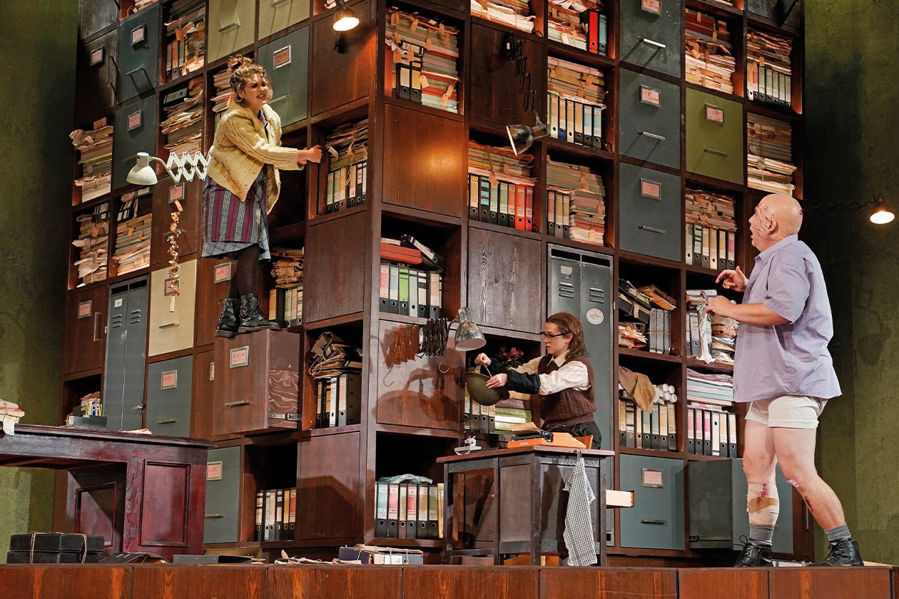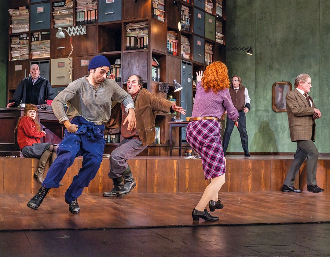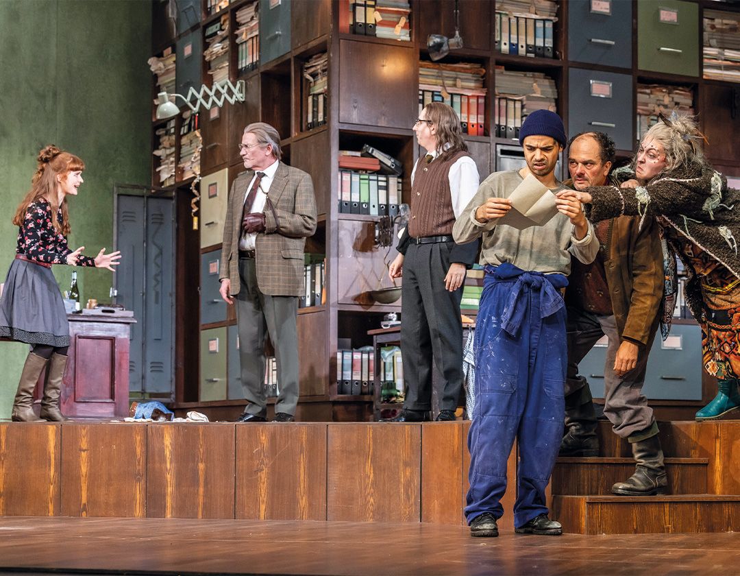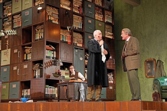 [...] Vornam lässt das Ganze in einem großen Raum spielen, der gleichzeitig Adams Wohnung und Gerichtssaal ist, und von einer mit Akten vollgestopften Registratur dominiert wird (Ausstattung: Tom Musch). Das Ensemble zeigt sich spielfreudig, die kurzweilige Inszenierung von Kleists Parabel über Macht und Ohnmacht ist temporeich und recht klassisch gehalten – der eine oder andere mutigere Verweis Richtung Aktualität hätte aber sicher gut getan. Das Stück fängt aber die Unsicherheiten, das Misstrauen, die Präpotenz ein. Dankbarer Applaus vom Premierenpublikum nach zwei Stunden und zwanzig Minuten (mit Pause).