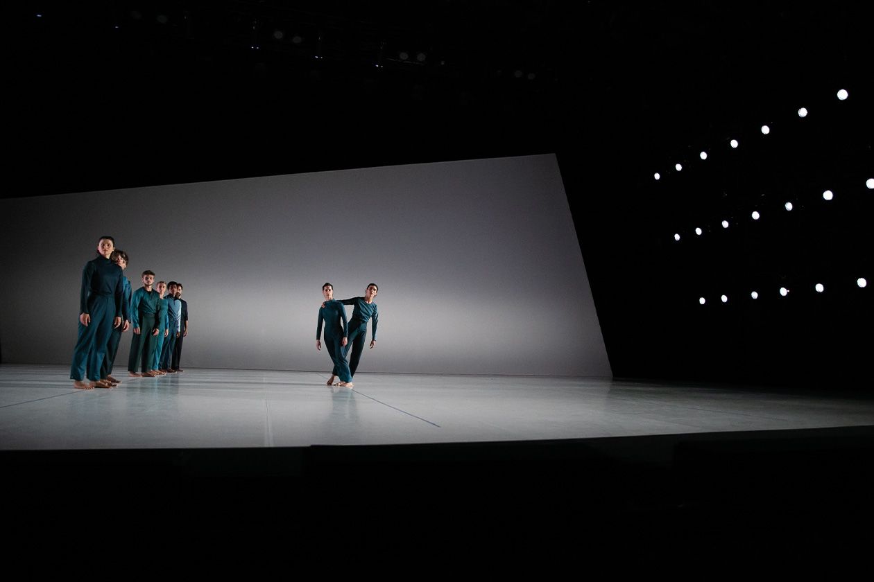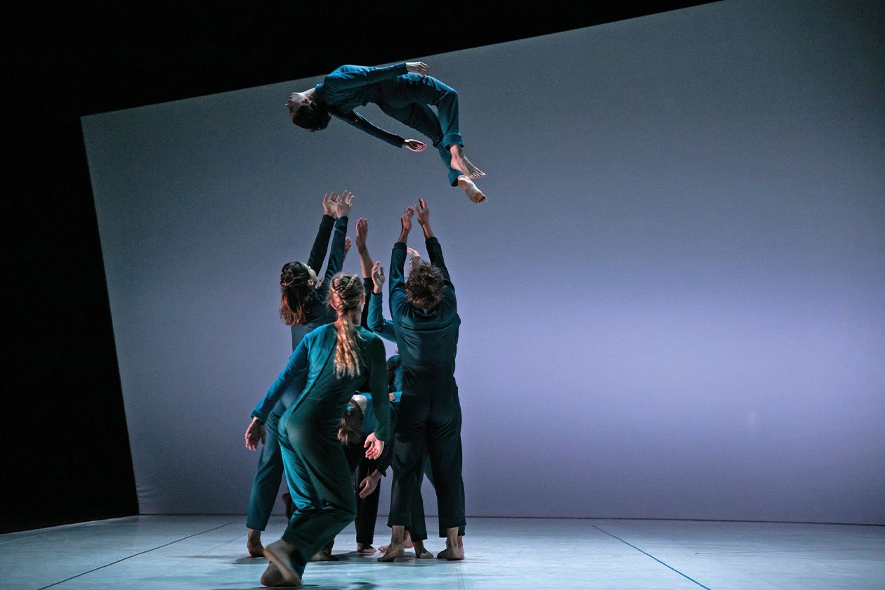 Eine hypnotische, hochpräzise Gruppenarbeit, in der Gravitation, Gewicht und Gleichgewicht zum eigentlichen Motor der Bewegung werden.