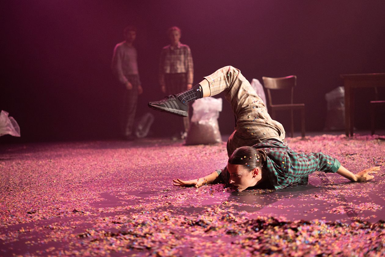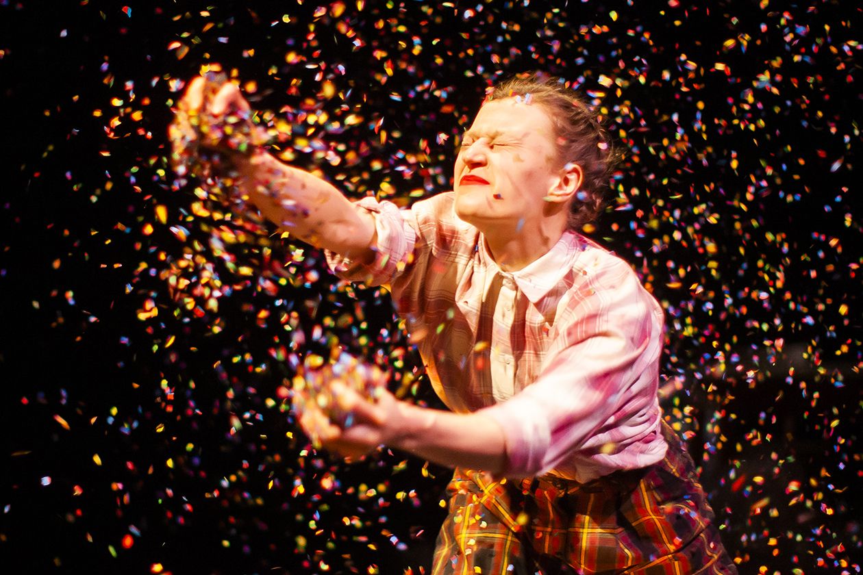 »Sex mit Madonna« nimmt die gesellschaftlich tabuisierte bipolare Störung in ihrer Körperlichkeit auf. Die bipolare Störung, auch manisch-despressive Erkrankung genannt, ist eine der häufigsten psychischen Erkrankungen in Deutschland und bringt Betroffene oft in prekäre Situationen. Wie bewegt sich ein manischer Körper und wie ein depressiver? Die Spannung zwischen Manie und Depression in einer Person, die Körper und Geist schier zerreißt, ist der Kern dieser choreografischen Auseinandersetzung. Mit drei Tänzerinnen und Tänzern und 100 kg buntem Konfetti zaubert Choreograf Chris Jäger einen luziden Traum.