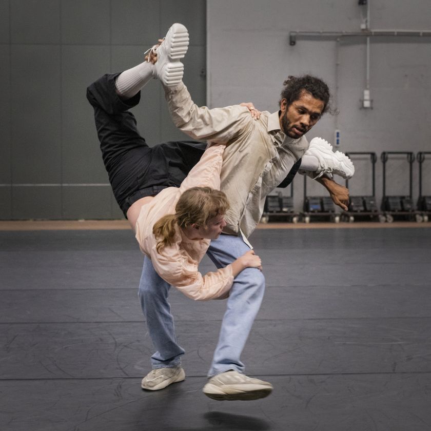 Sarah Baltzinger und Isaiah Wilson, die Schöpfer des Duetts, haben eine tänzerische Bewegungssprache entwickelt, die sich an der Grenze zu Puppenspiel und physical Theatre bewegt. In ihrer Arbeit sind die beiden Künstler ständig auf der Suche nach choreografischen Werkzeugen, die die Besonderheiten jedes Einzelnen zum Vorschein bringen.