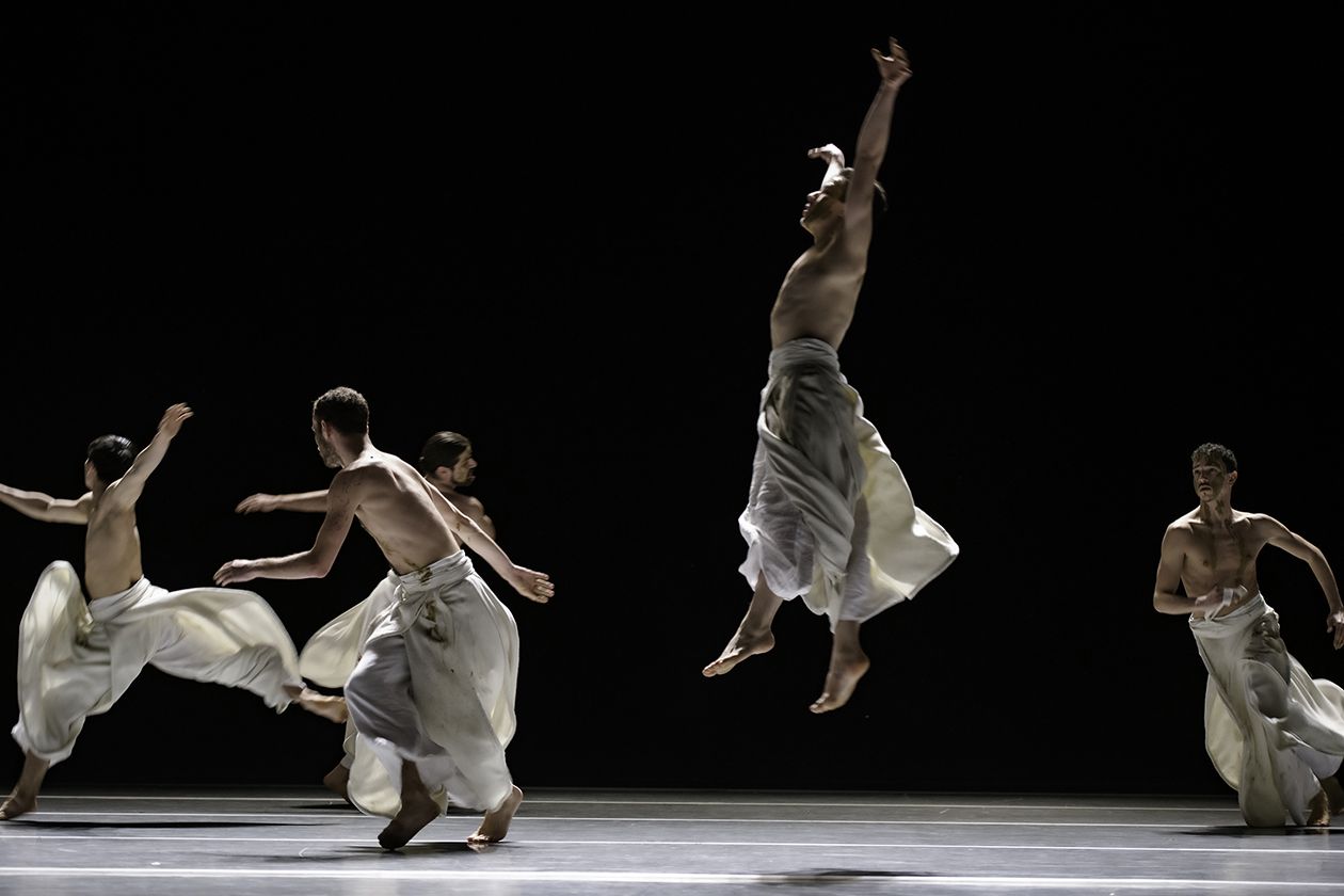 Dieser Ballettabend verbindet zwei der herausragenden Choreografen unserer Zeit: Ohad Naharin und Marco Goecke. Ohad Naharin, Jahrgang 1952, hat mit seiner Bewegungstechnik Gaga einen vollkommen neuartigen Zugang zum Tanz kreiert; Marco Goecke, 20 Jahre jünger, entwickelte einen Bewegungsstil, der auf rasend schnelle Repetitionen der Arme und Beine setzt. Und wohl nicht zufällig setzen beide immer wieder auf die Wiederholung von Motionen, auf eine bisweilen als störrisch empfundene Vorführung von Sequenzen, damit man sie endlich mit dem äußeren und inneren Auge aufnehme, auf dass sie dann variiert und weitergeführt werden können. Die beiden Choreografien von Ohad Naharin – »George & Zalman« (2006) und »Black Milk« (1985) – gleichen zwei sich steigernden Ritualen: das erste für ein Frauen-, das zweite für ein Männerensemble.